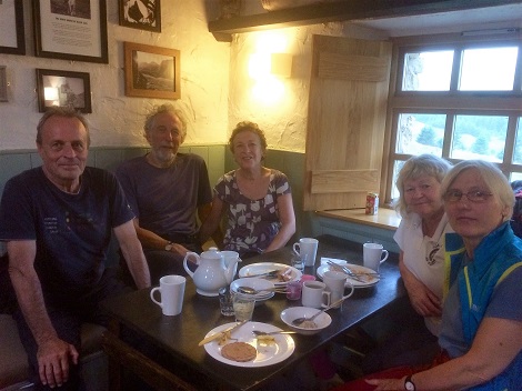 All five walked in the six miles from the Bowness Knott car park on a drizzly Sunday afternoon. Monday was forecast heavy rain, and it did. Mick added a new Wainwright route up Great Gable to his list, and the other four walked up Scarth Gap onto Haystacks. Then along the boundary fence in the wind, rain, and mist to Seavy Knott and back down ito the valley via Loft Beck. The afternoon was spent in the hostel with perhaps up to fifty Coast-to-Coast walkers calling in for shelter and a brew. Tuesday dawned not quite as wet, and the members returned to their cars and coffee in Cockermouth.